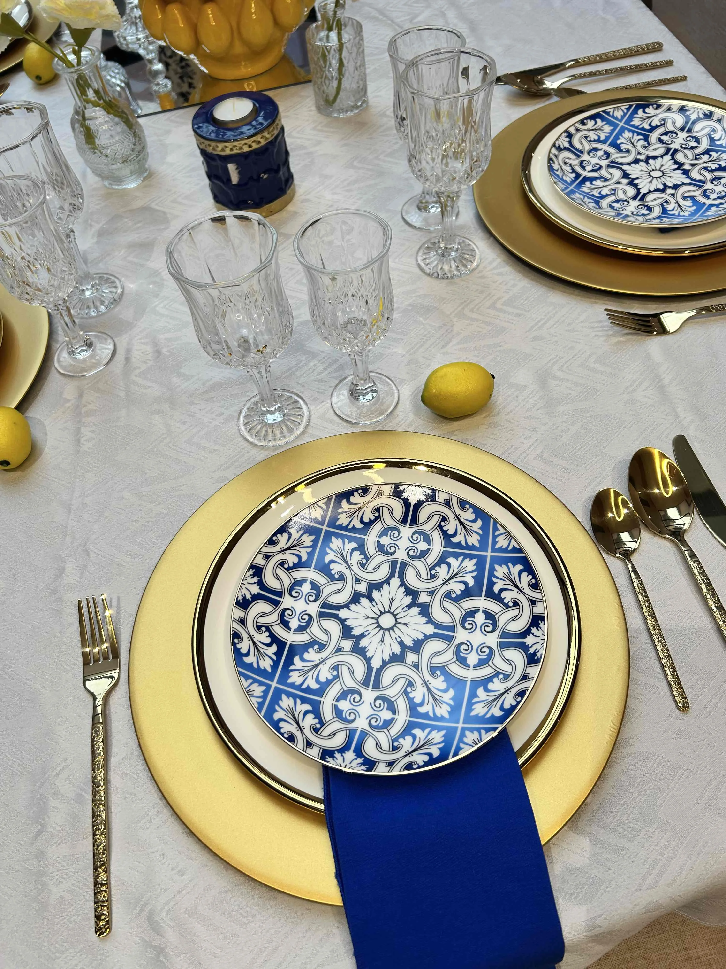 6 "8" 10,5 "12" cerámica azul y blanco vintage porcelana cargador placa gres vajilla para alquiler de bodas, vajilla de lujo